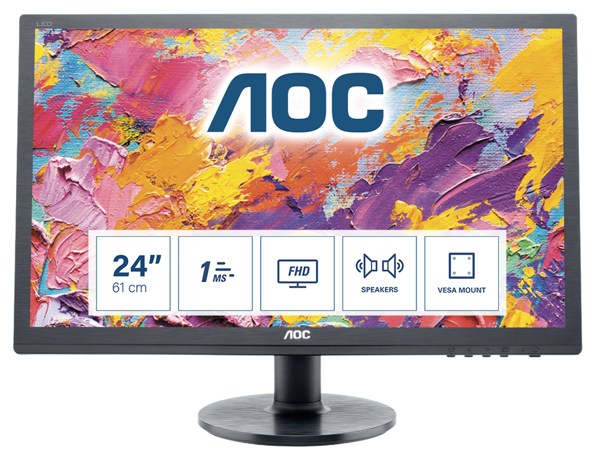 Questo monitor Full HD con altoparlanti e prese HDMI, DVI e VGA per varie sorgenti di ingresso, offre un tempo di risposta di 1 per una visione esente da effetti di ghosting.