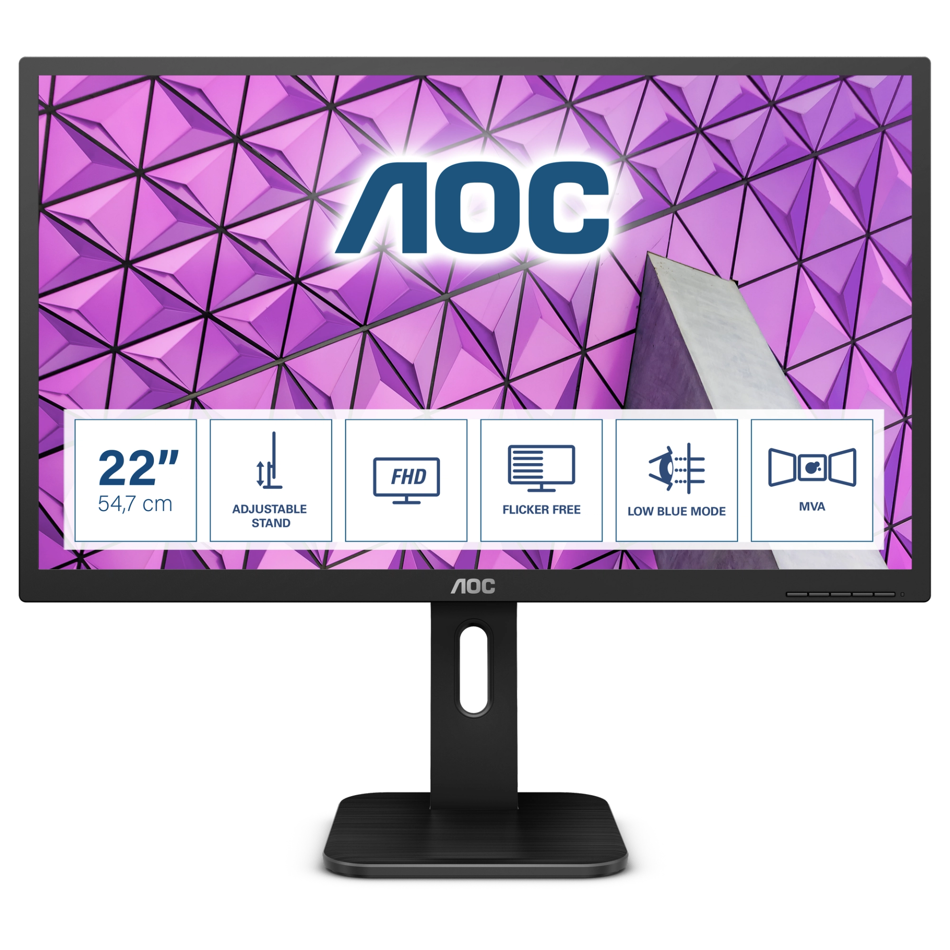 Praktisk 21,5” Full HD MVA skjerm med høy kontrast