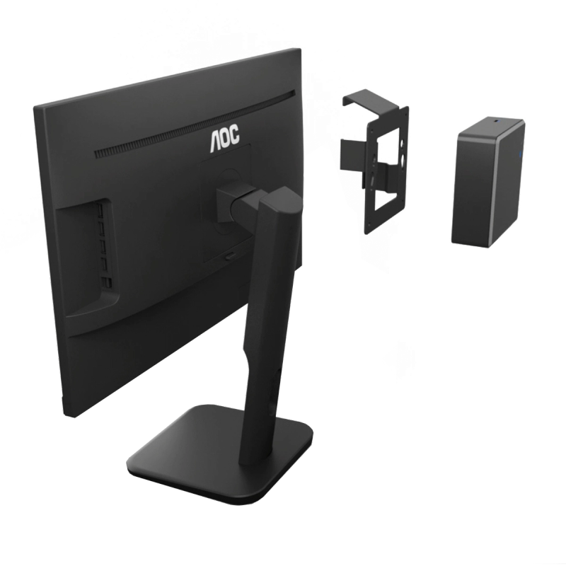 AOC's VESA75 bracket offers a perfect solution for attaching a mini PC with VESA 100 x 100 mm bracket to the height adjustable base of AOC 75 Series monitors. Simply attach the mini PC, slide through the height adjustable stand and enjoy a cleaner workspace!