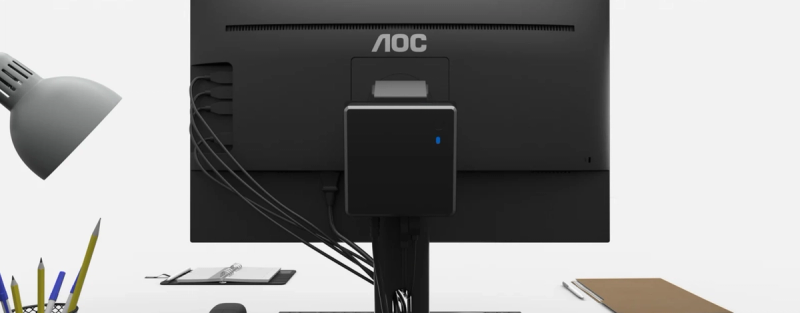AOC's VESA75 bracket offers a perfect solution for attaching a mini PC with VESA 100 x 100 mm bracket to the height adjustable base of AOC 75 Series monitors. Simply attach the mini PC, slide through the height adjustable stand and enjoy a cleaner workspace!