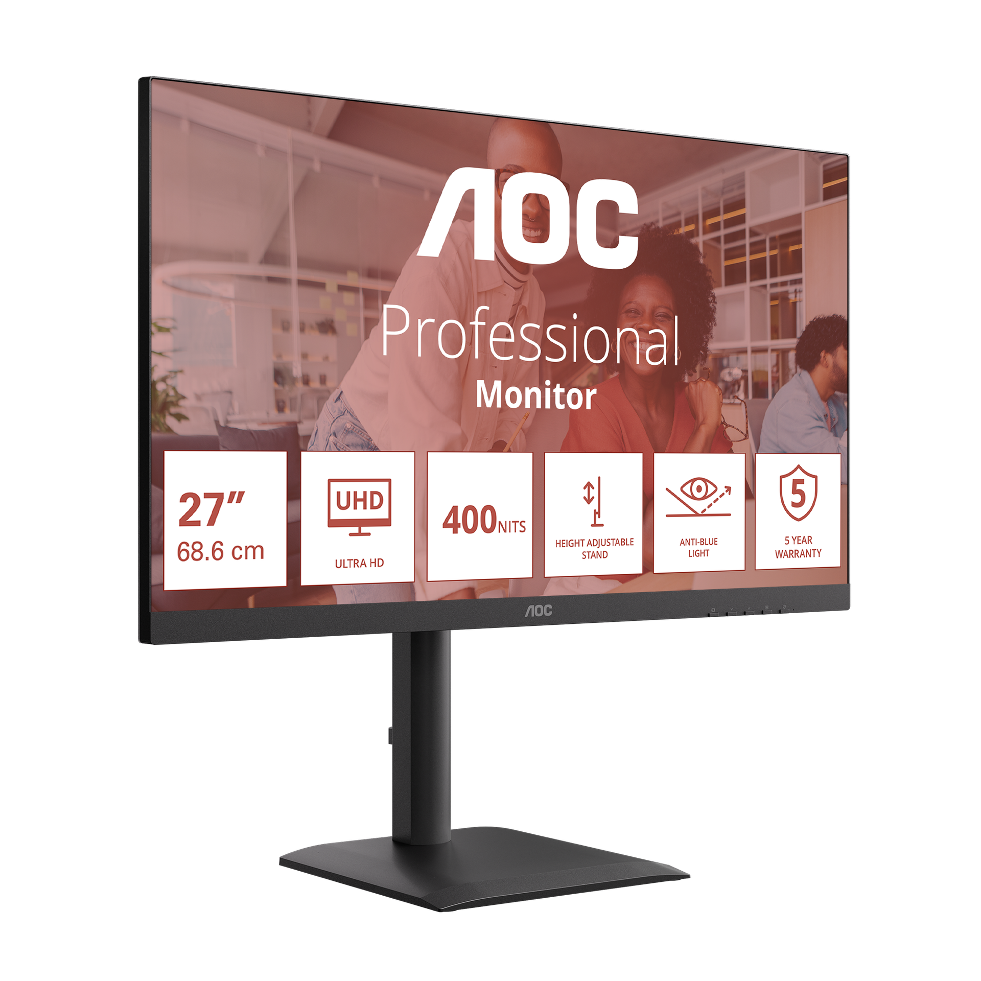 U27E4CV ger knivskarp 4K UHD-upplösning på en 27-tumsskärm, kombinerat med 400 nits ljusstyrka för tydlig, detaljerad bild i alla kontorsmiljöer. Med Hardware Anti-Blue Light, ett höjdjusterbart stativ (HAS) och en 90 W PD-dockningsstation kombinerar den visuell prestanda med ergonomi och anslutningseffektivitet. Perfekt för yrkesverksamma som arbetar med detaljerat innehåll, multitaskar mellan olika appar eller optimerar hybridkontorsuppsättningar.