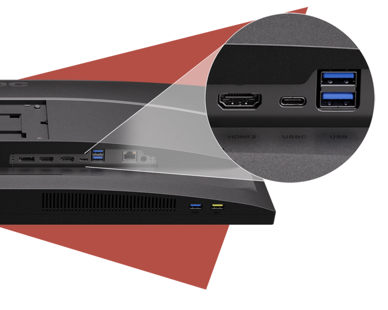 Förenkla anslutningarna endast med en kabel. USB-C-anslutningen tillhandahåller DisplayPort alternativt läge för att överföra högupplösta videosignaler från en bärbar dator till skärmen samtidigt som du laddar notebook-datorns batteri från monitorn med USB-ström.