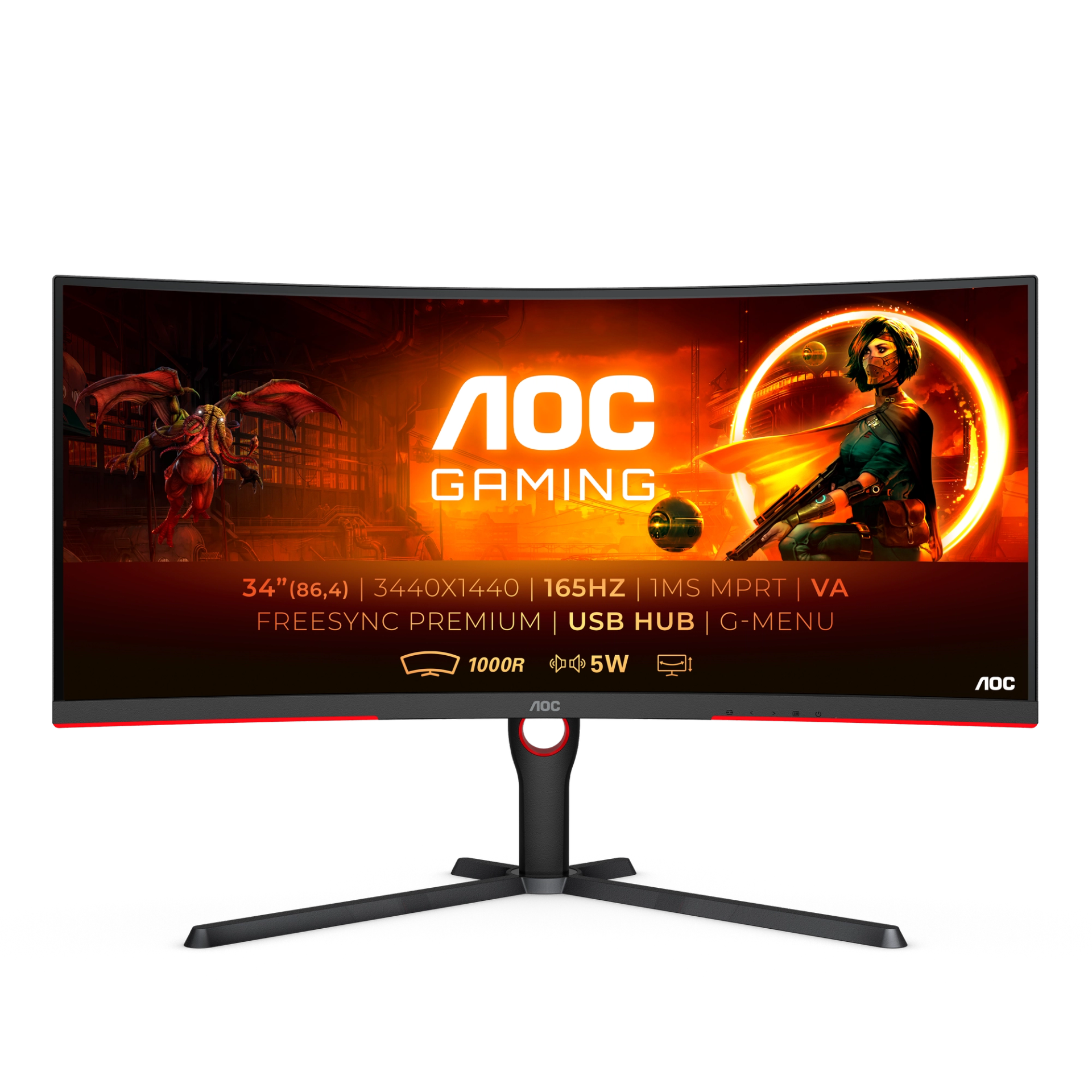 CU34G3S/BK modeli G3 ürün grubumuz içindeki en geniş modelimiz. Bu oyun monitörü 1000R kavise, FreeSync Premium’a ve 165Hz yenileme hızına sahip.