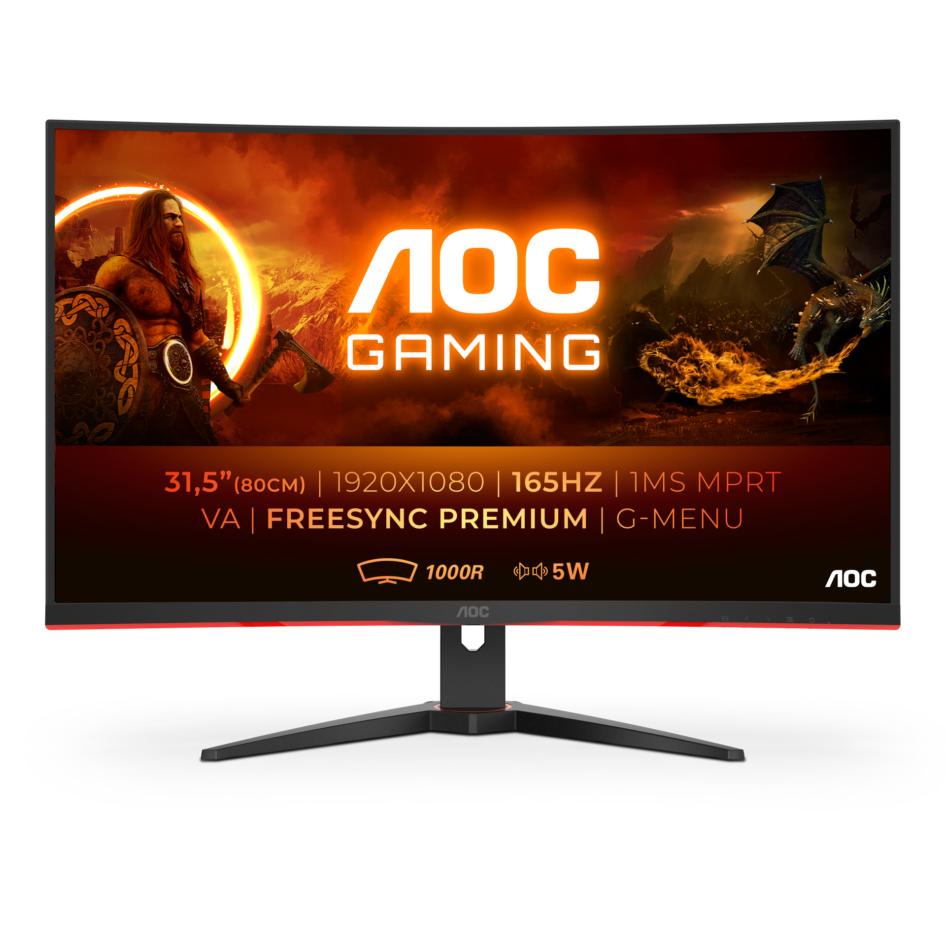 Large 31.5” VA monitor with 165 Hz, 1 ms response time and FreeSync Premium