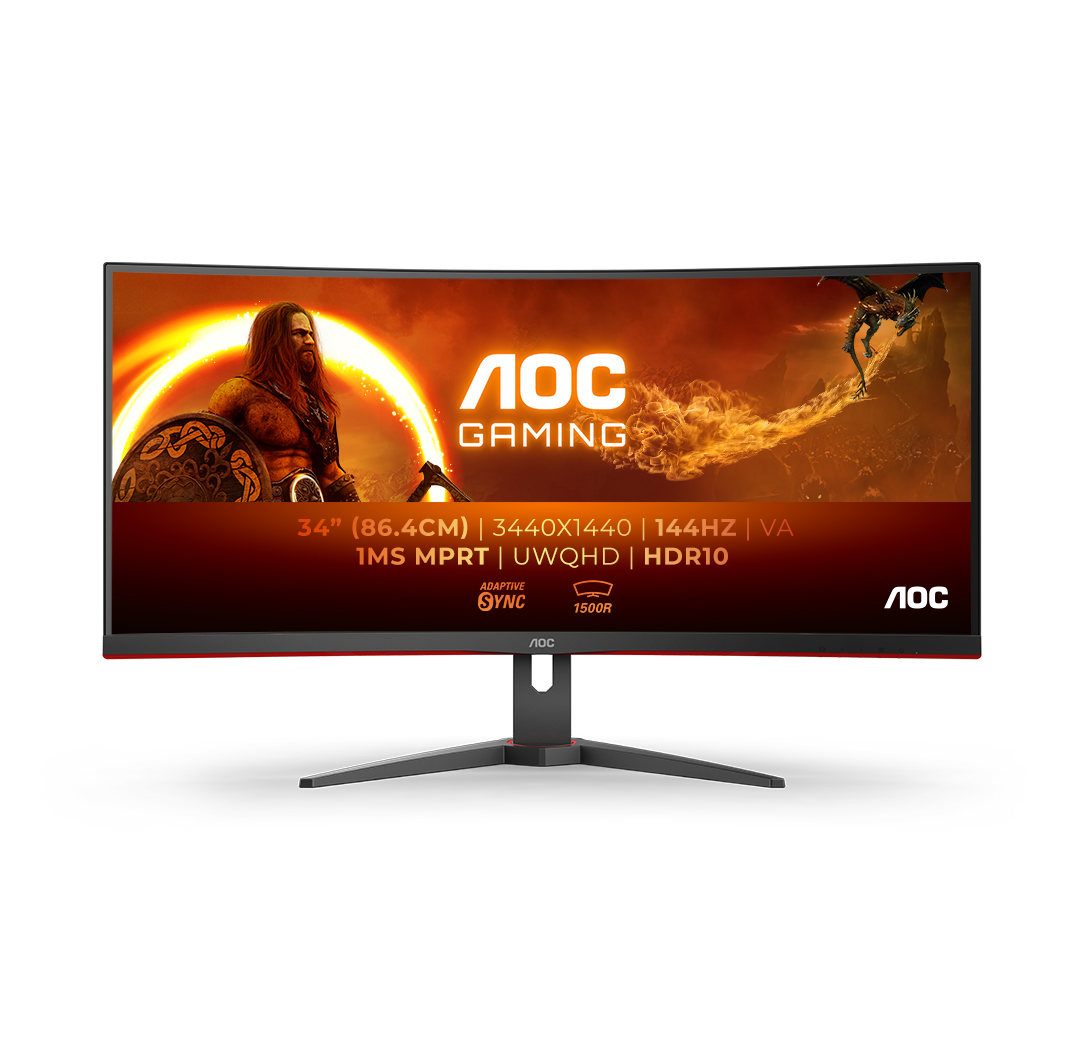 Enhance your Gaming adventure with the CU34G2E/BK: a 34-Inch Ultrawide Curved Monitor offering WQHD resolution, 144Hz Refresh Rate and HDR10 support