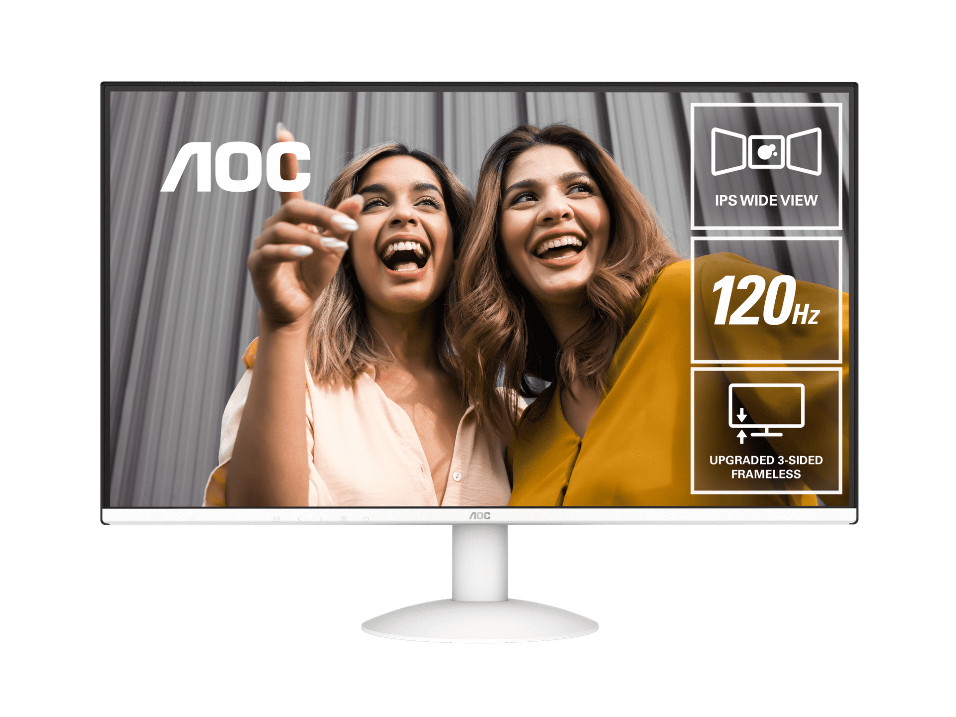 The AOC 27B30H3/BW is a 27" Full HD IPS monitor designed for clarity and everyday performance. A 120Hz refresh rate and 1ms response time deliver smooth, responsive visuals, while the IPS panel provides accurate colors and wide viewing angles for consistent image quality. Finished in a sleek white design, this slim monitor adds a clean, refreshing look to your workspace while delivering reliable picture quality for work and entertainment.