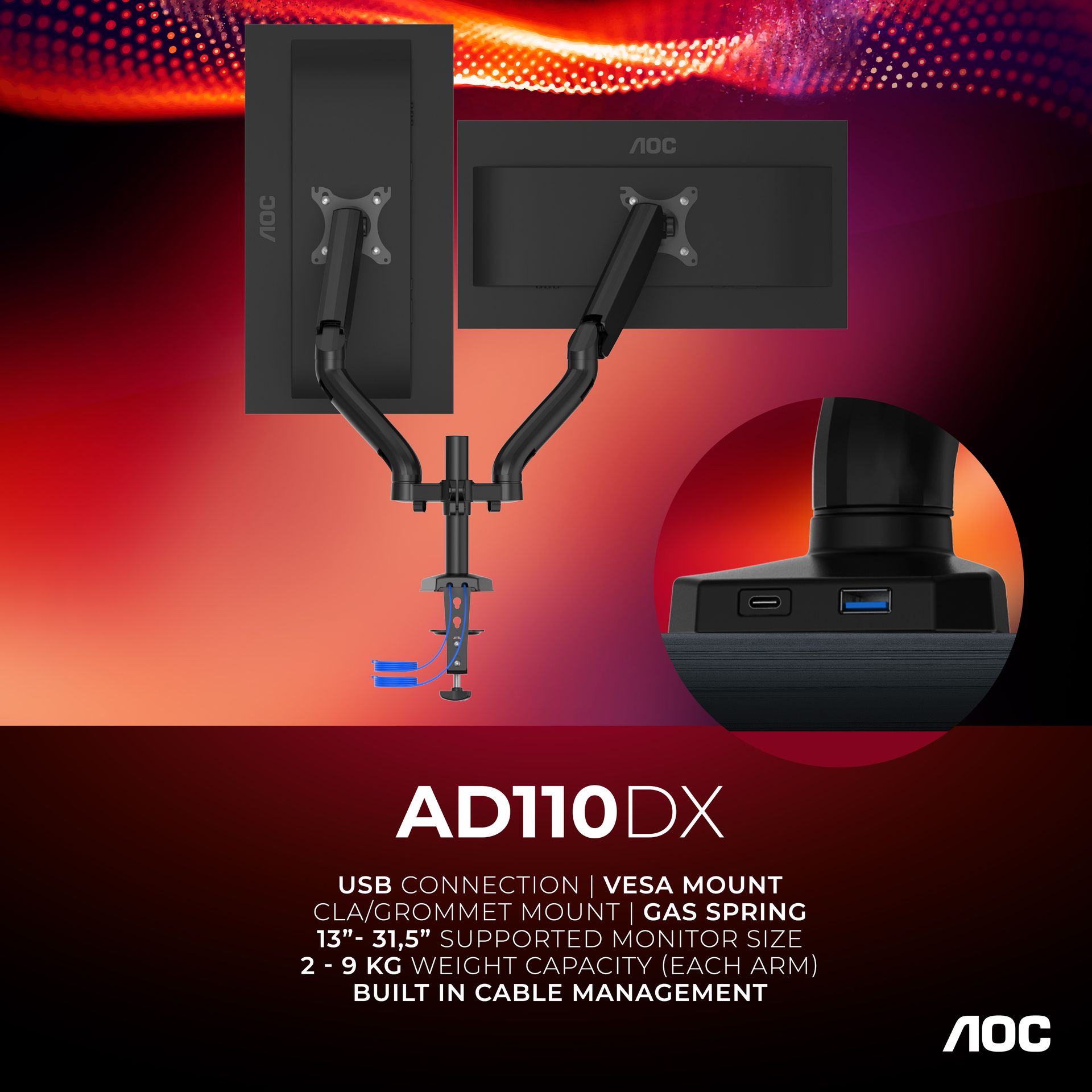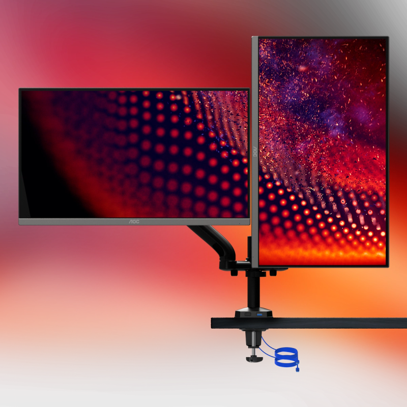 Brazo dual para monitor de hasta 32", con Hub USB integrado