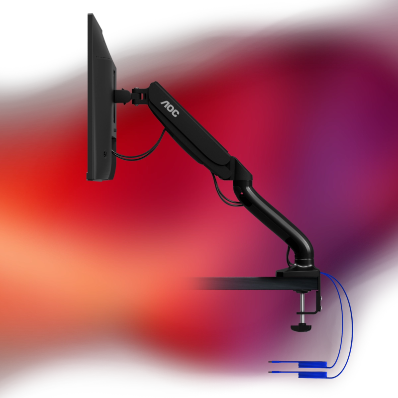 El elegante brazo para monitor dual AD 100 con resorte de gas cargado, puede sujetarse a su escritorio e incorporar dos monitores con un tamaño de hasta 32" Rango de giro de 360°, amplia inclinación, 320 mm de altura que aportan una enorme flexibilidad. El Hub USB está equipado con un puerto USB 3.0 que soporta transferencia de datos a una velocidad de hasta 5Gbps y un puerto USB que soporta transferencia de datos a 5Gbps lo que le permitirá transferir en segundos su contenido favorito y sus archivos. Use los cables de extensión macho USB 3.0 para conectar su PC con el Hub USB y así aumentar su productividad con un escritorio ordenado.