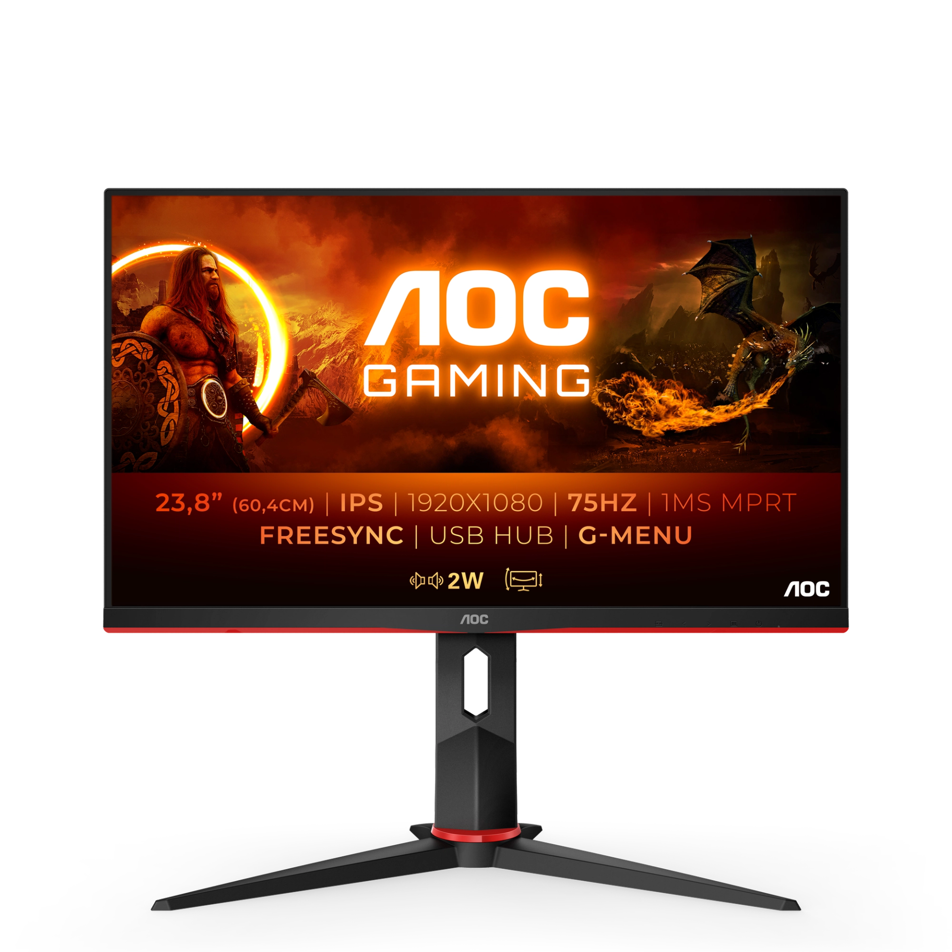 Everything gamers need: 75 Hz refresh time, 1 ms response time (MPRT) and IPS panel