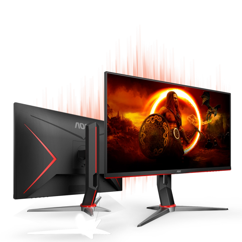 144 Hz refresh rate IPS panel together with 1 ms response time and FreeSync support. 23.8" flat display in Full HD, 3-sides frameless design and height adjustable stand